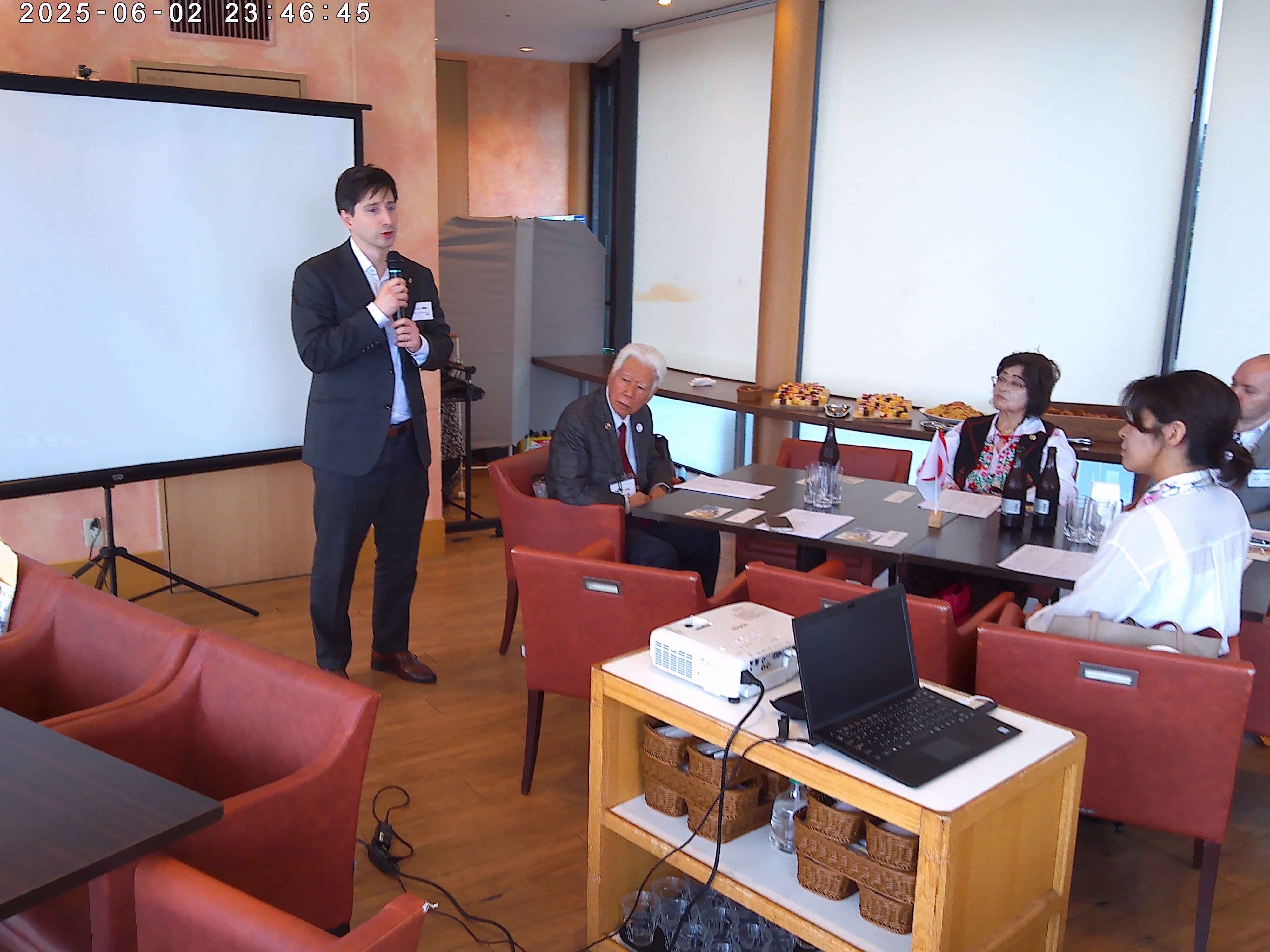 来日中のサボー通商副大臣は歓迎のご挨拶のあとプロジェクターでハンガリーと日本との強い結びつきを具体的に解説。副大臣に随行してこられた投資促進公社総裁、貿易促進公社総裁からはそれぞれの事業の紹介がありました。